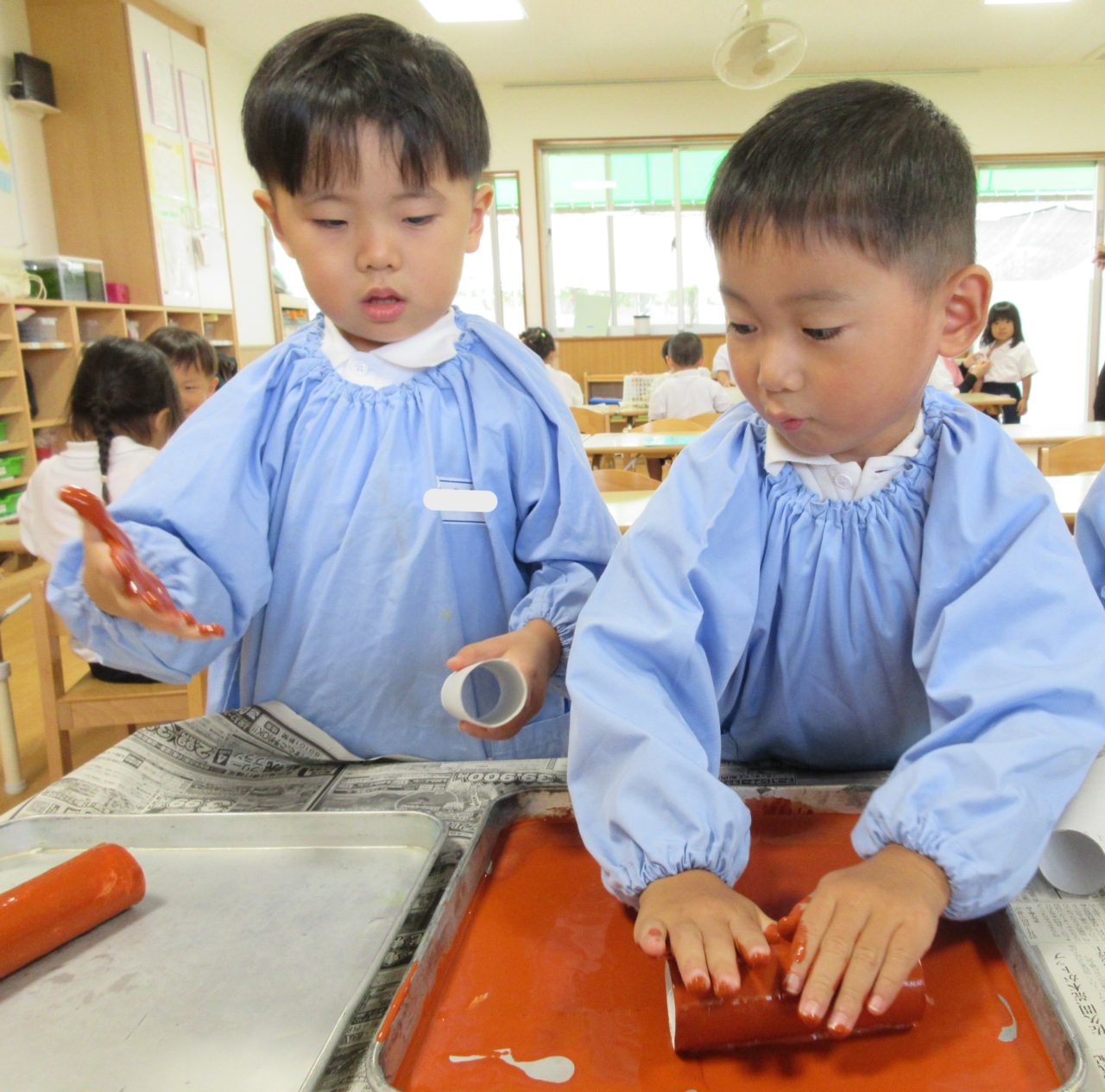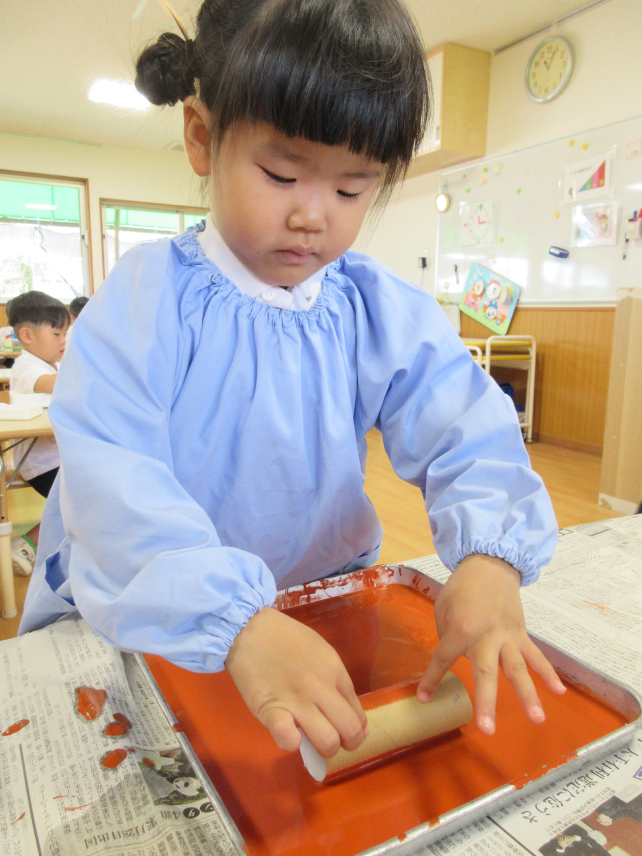 最後には「できたー!」とみんなで喜び合ったり、手にいっぱいついた絵の具を見せ合ったりしていました♪