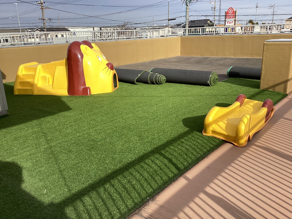 事務室前に置かれていたライオンさんが、なんと!二階のグリーン広場に移動しました♪