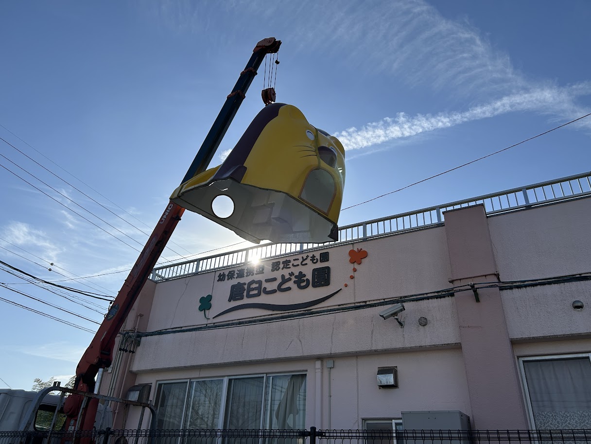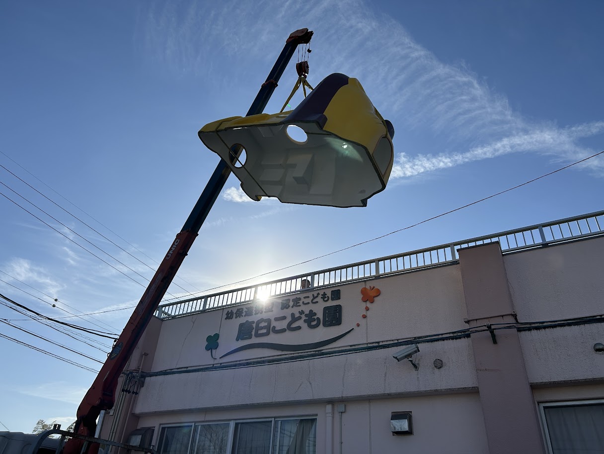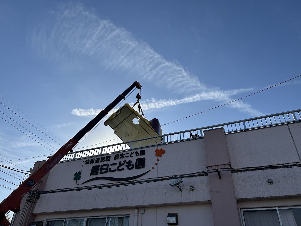 クレーン車に飄々と運ばれ、ゆっくりと降り立ちました。