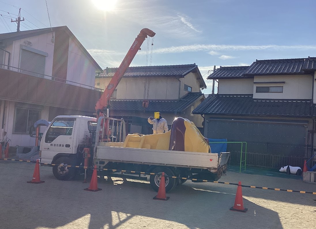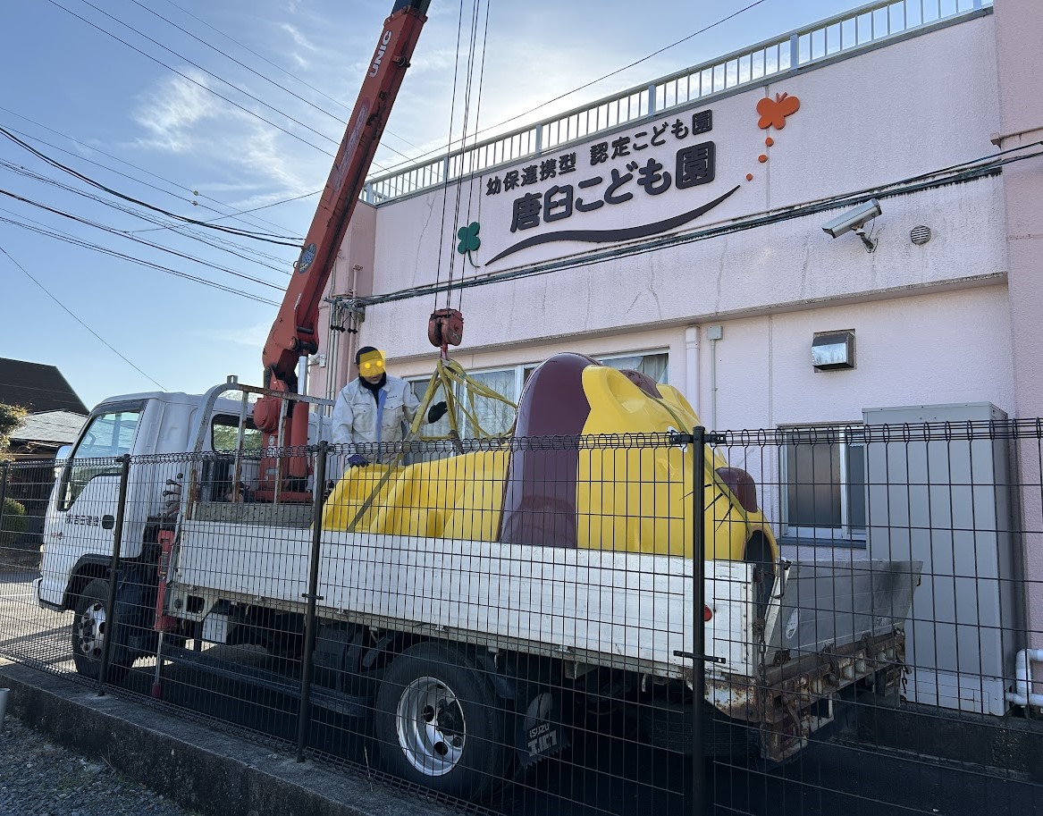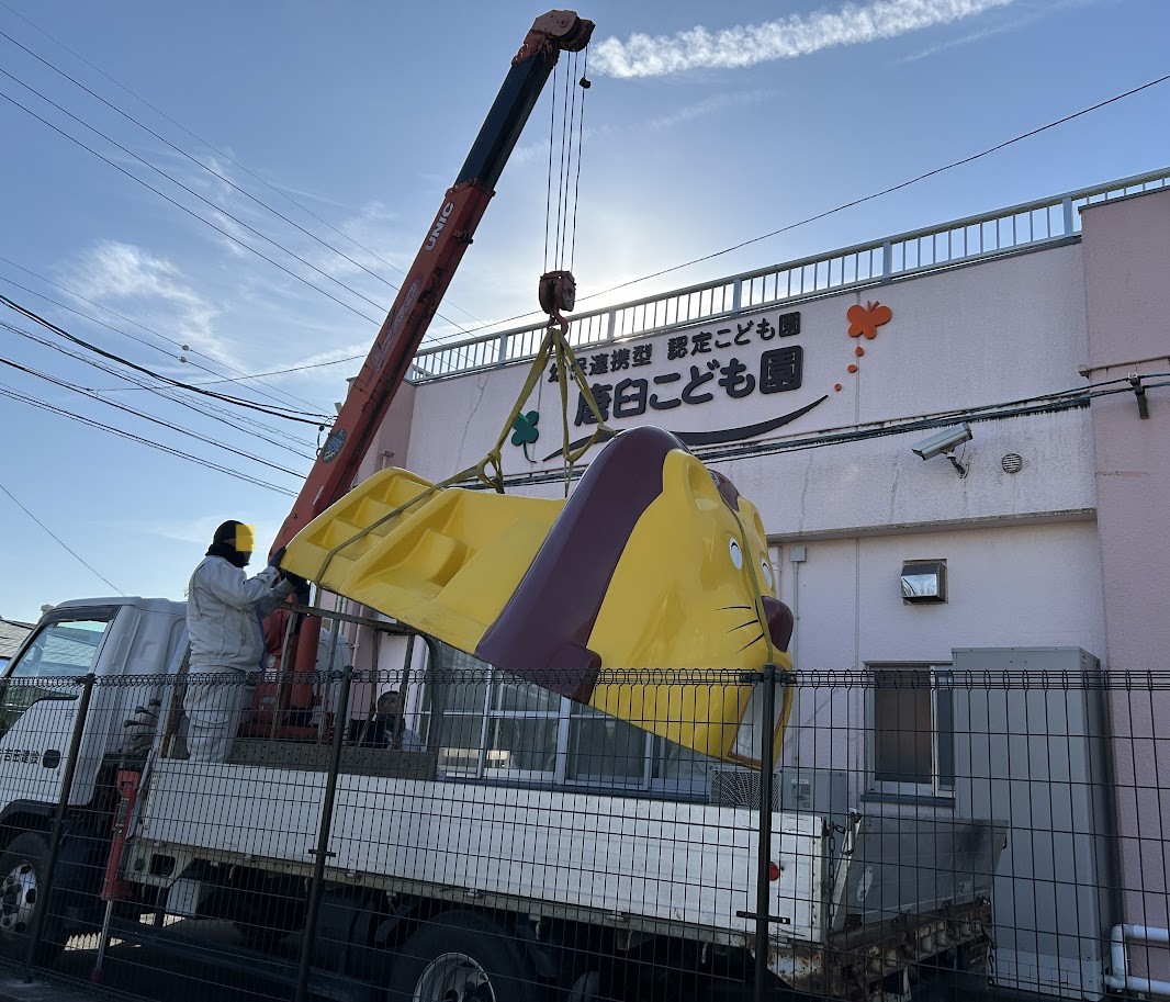 クレーン車に飄々と運ばれ、ゆっくりと降り立ちました。