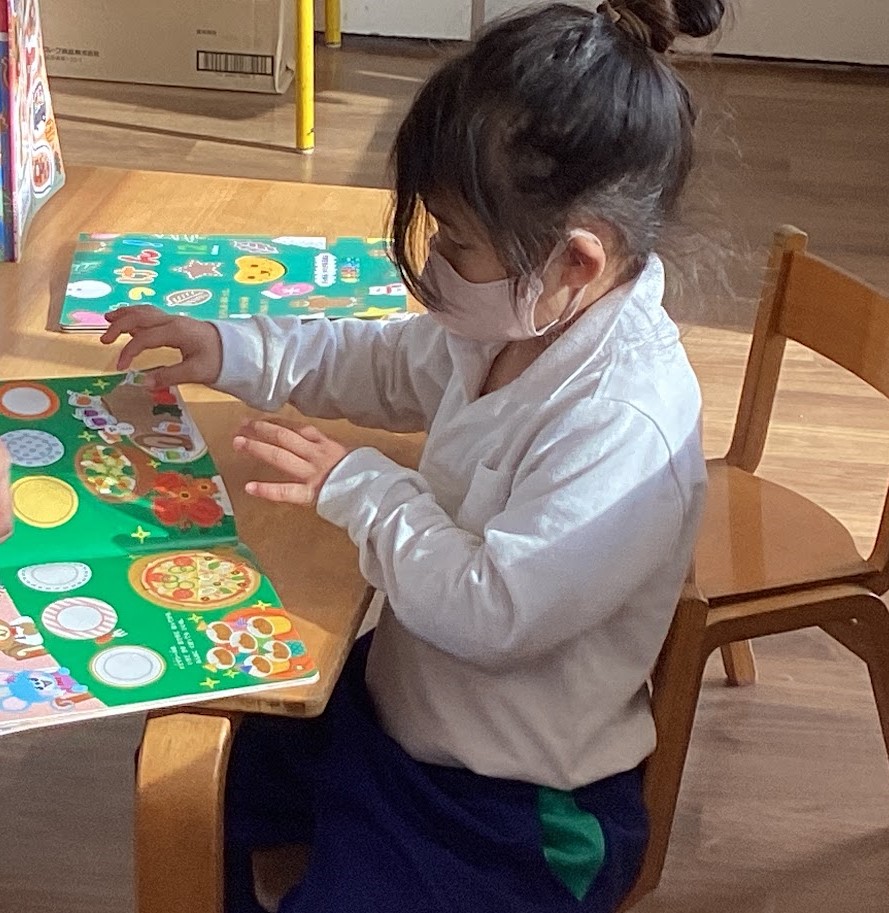 また、自分の月間絵本のシールを貼ったり、取ったりして、楽しんでいる子もいます。