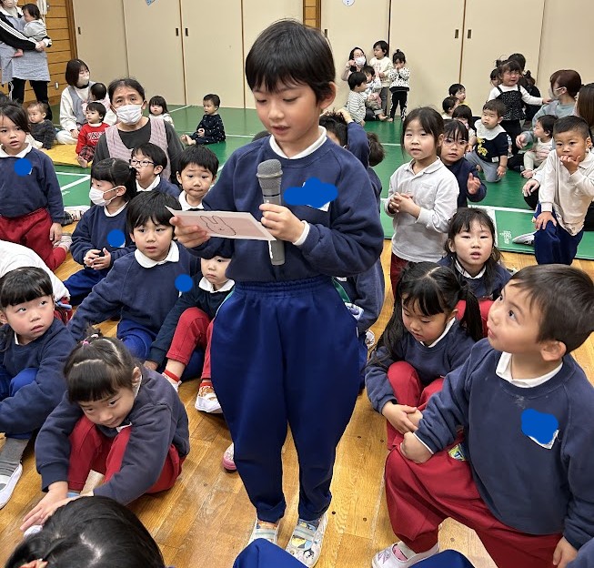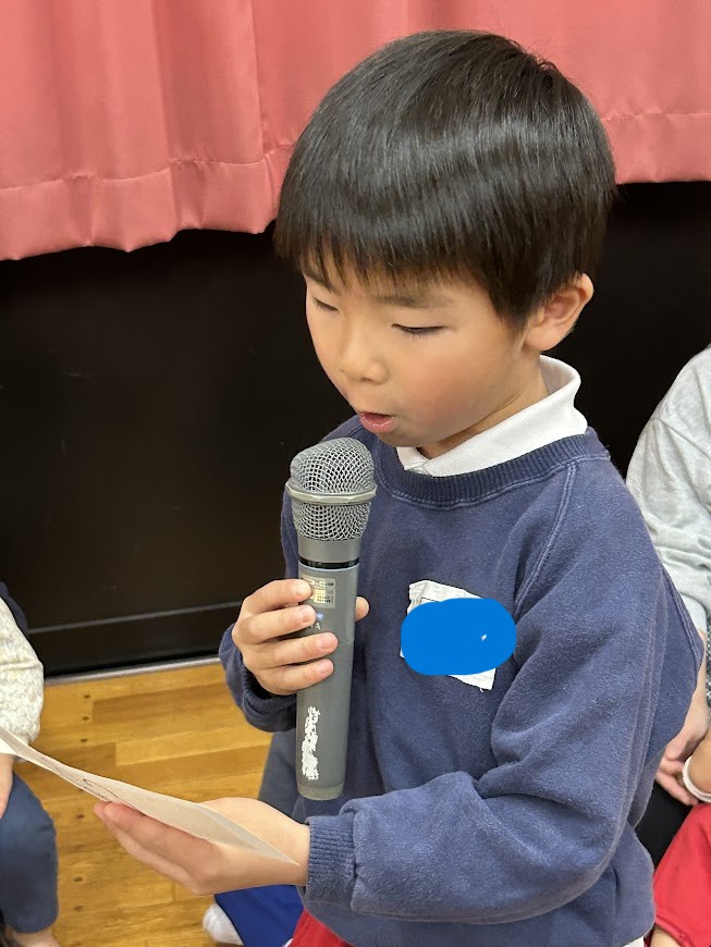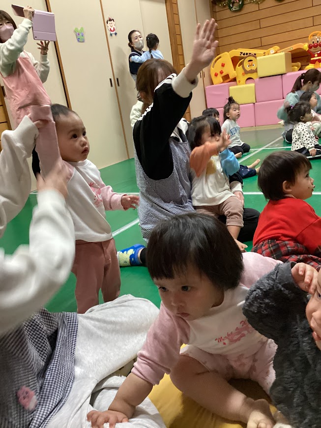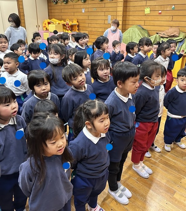 サンタさんがきてくれたお礼にみんなで「あわてんぼうのサンタクロース」「ジングルベル」の歌のプレゼントをし、サンタさんも喜んでくれました♪
