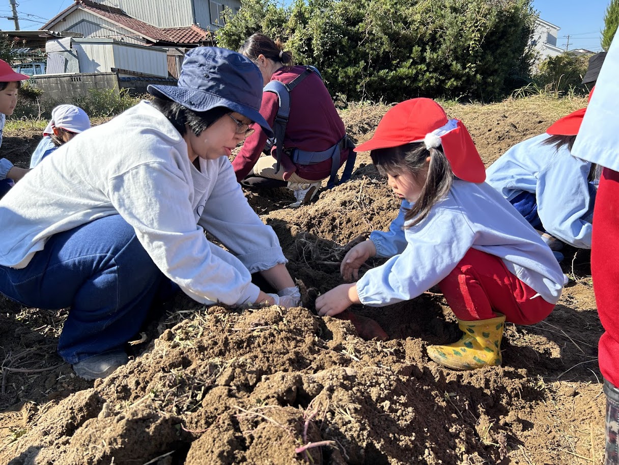 はとぽっぽクラブのお母さんたちにもお手伝いをしていただき、楽しく掘ることができました。
