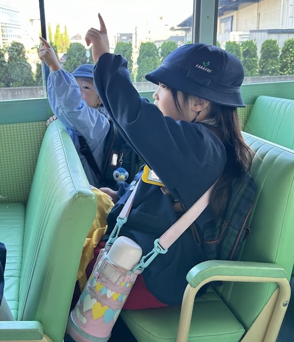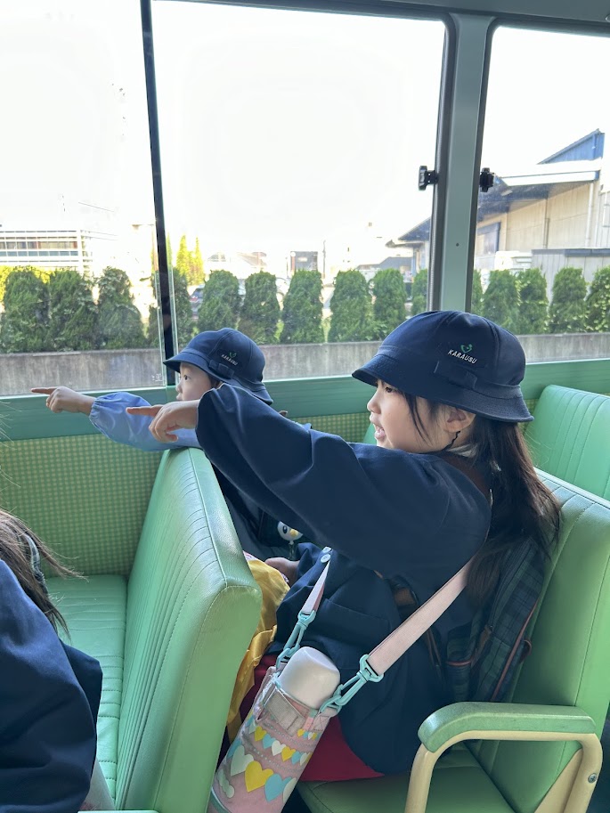 バス通園の朝の登園を覗いてみました。バスの中はいつも賑やかです♪ 子どもたちはいろいろなものを見て会話が弾みます。