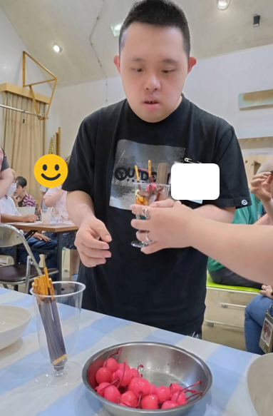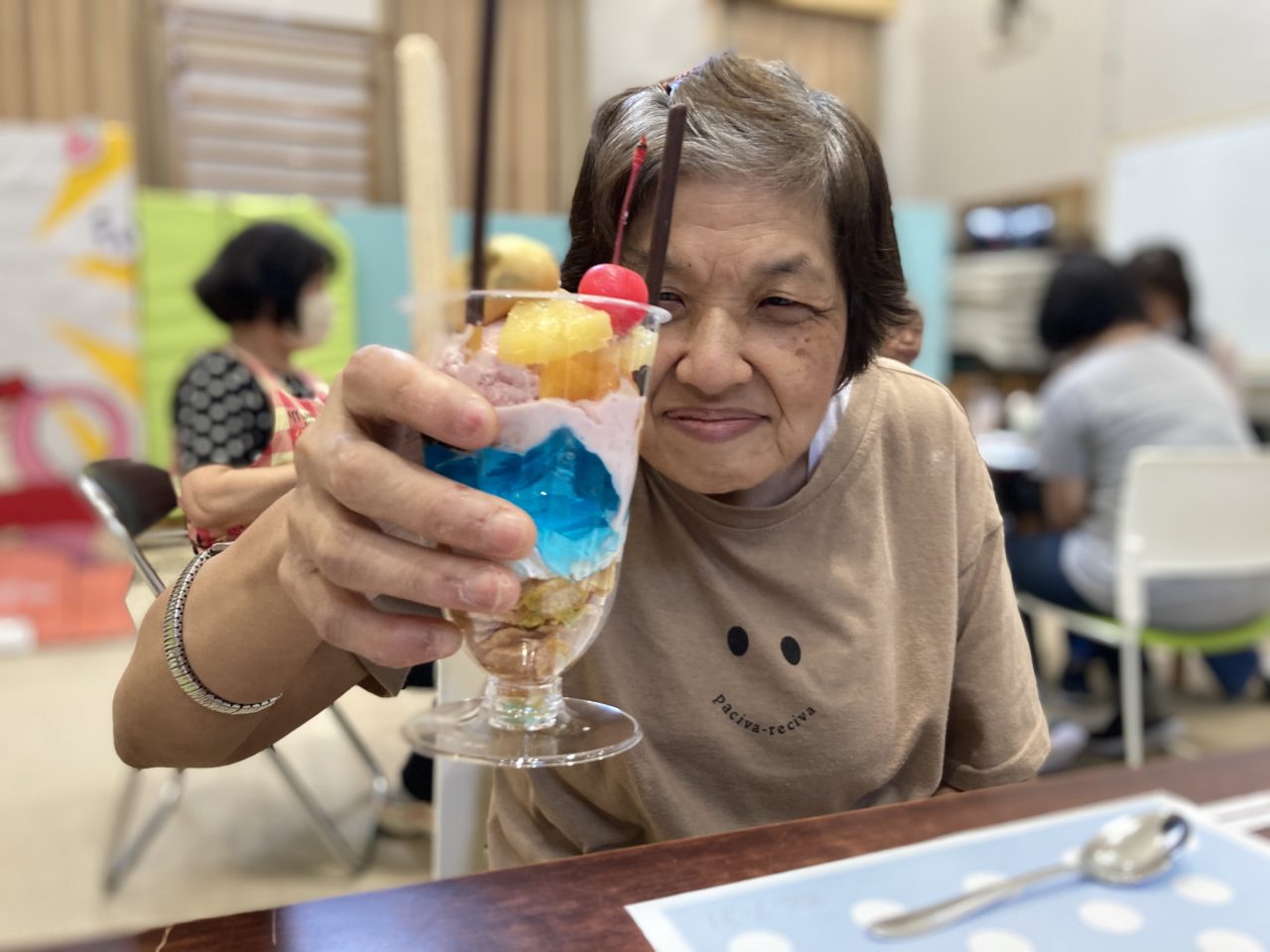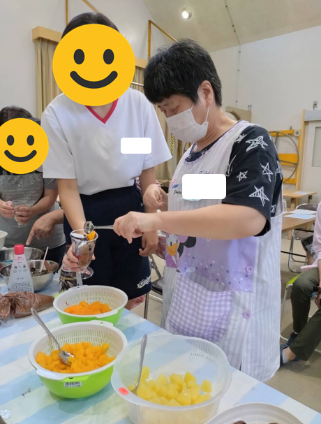 利用者の皆さんだけでなくスタッフも同じようにパフェを作り