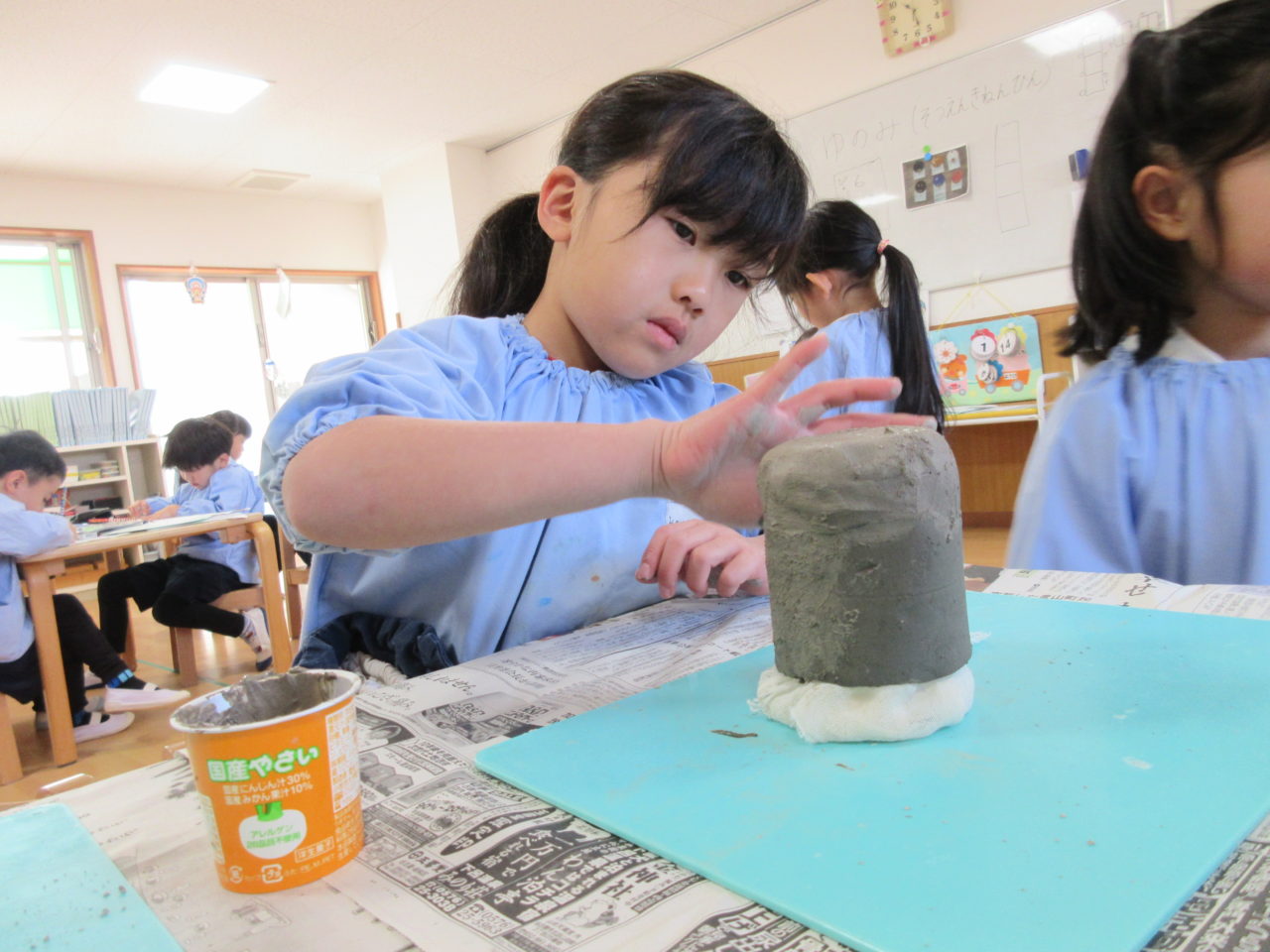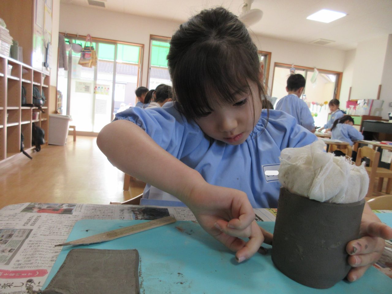 年長児が卒園に向けて記念品の“手作り湯呑づくり”を行いました。
