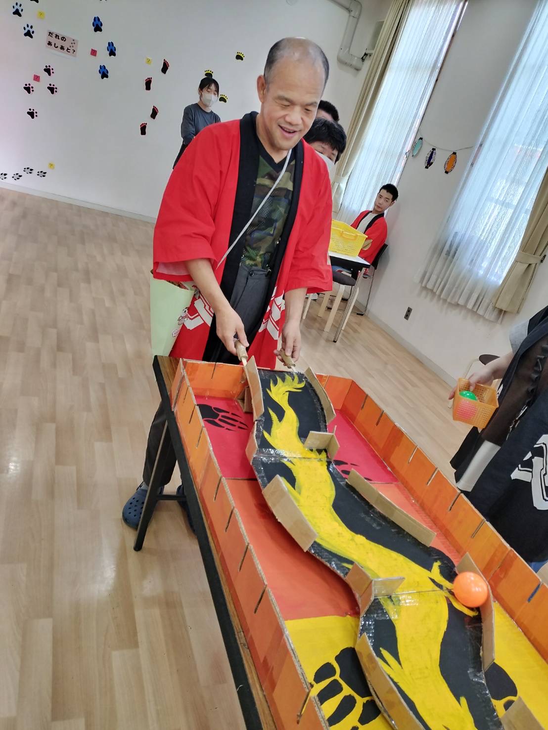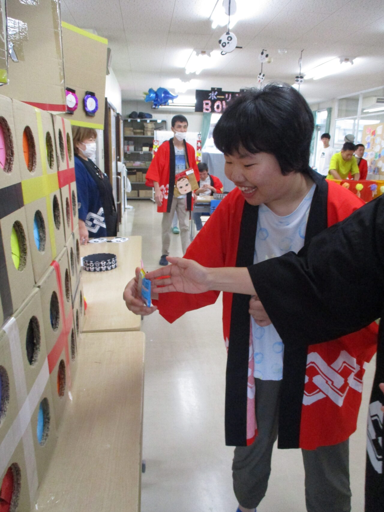 2日目は、グループごとにボウリングやボール転がしのゲームをしたり、ばりそばやパンダマンやチャーハンなどの模擬店で飲食したりして、みんなで楽しみました。