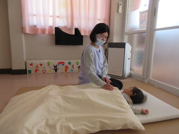 お子様の体調などに応じて臨機応変に無理のないよう、穏やかに過ごせるように保育しています。