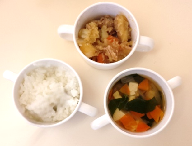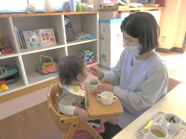 給食は園内で調理!栄養満点な食事で、普通食・離乳食共に対応しています。