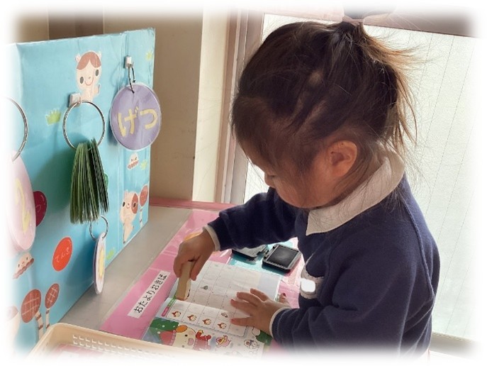 ももぐみさんも2月から、出席ノートにスタンプを自分で押し始めました♪