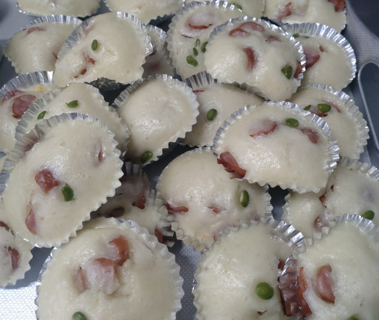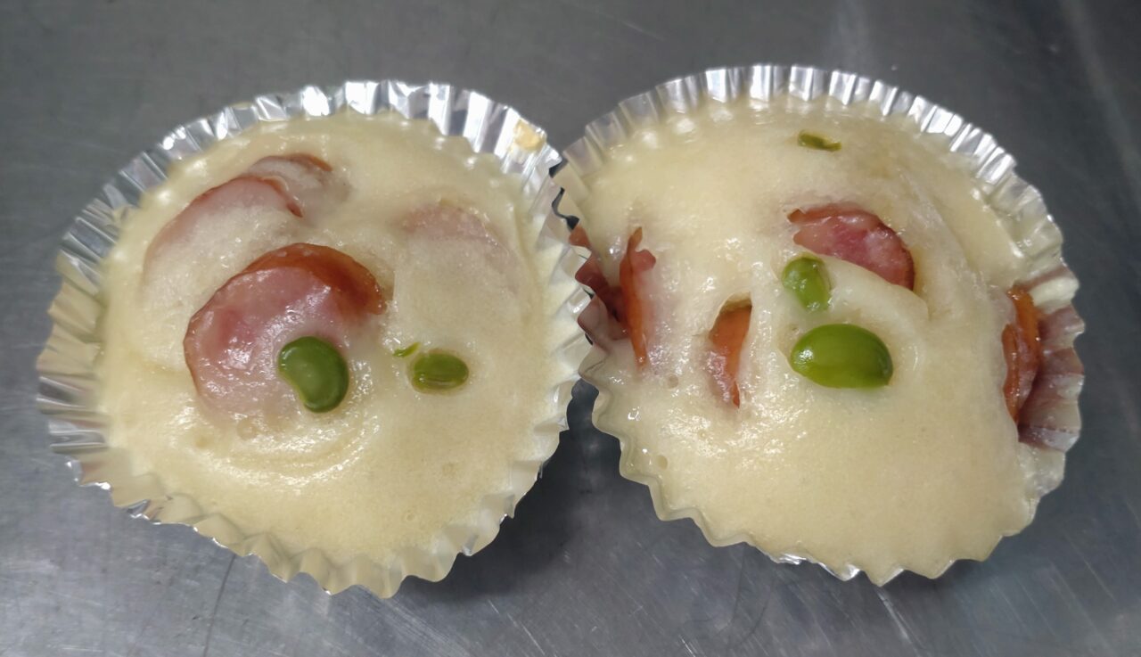 ウインナー入り蒸しパンの時にも枝豆を上にのせて蒸してみました。