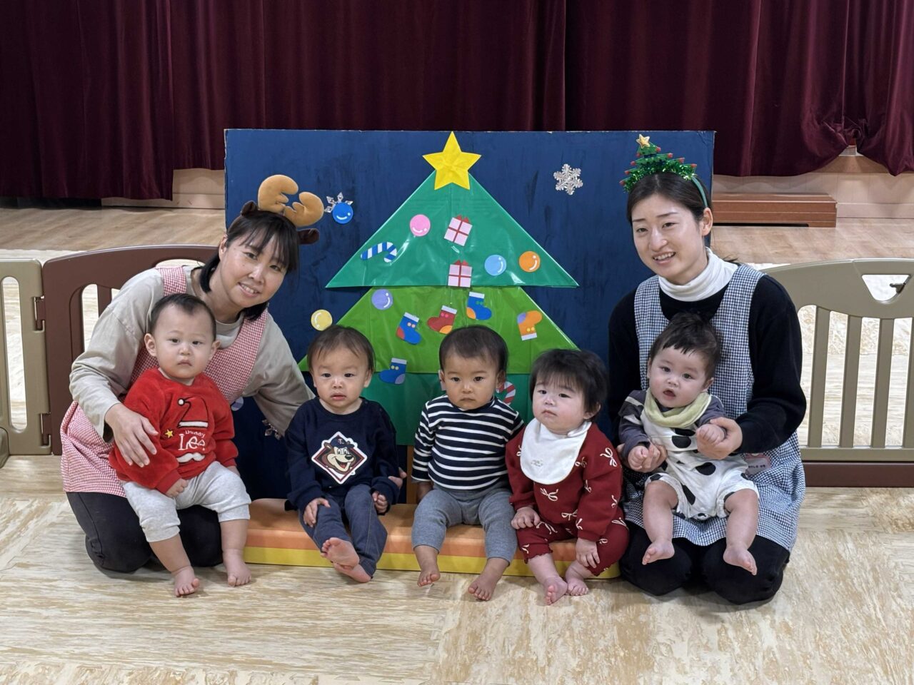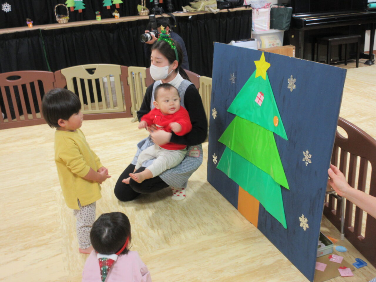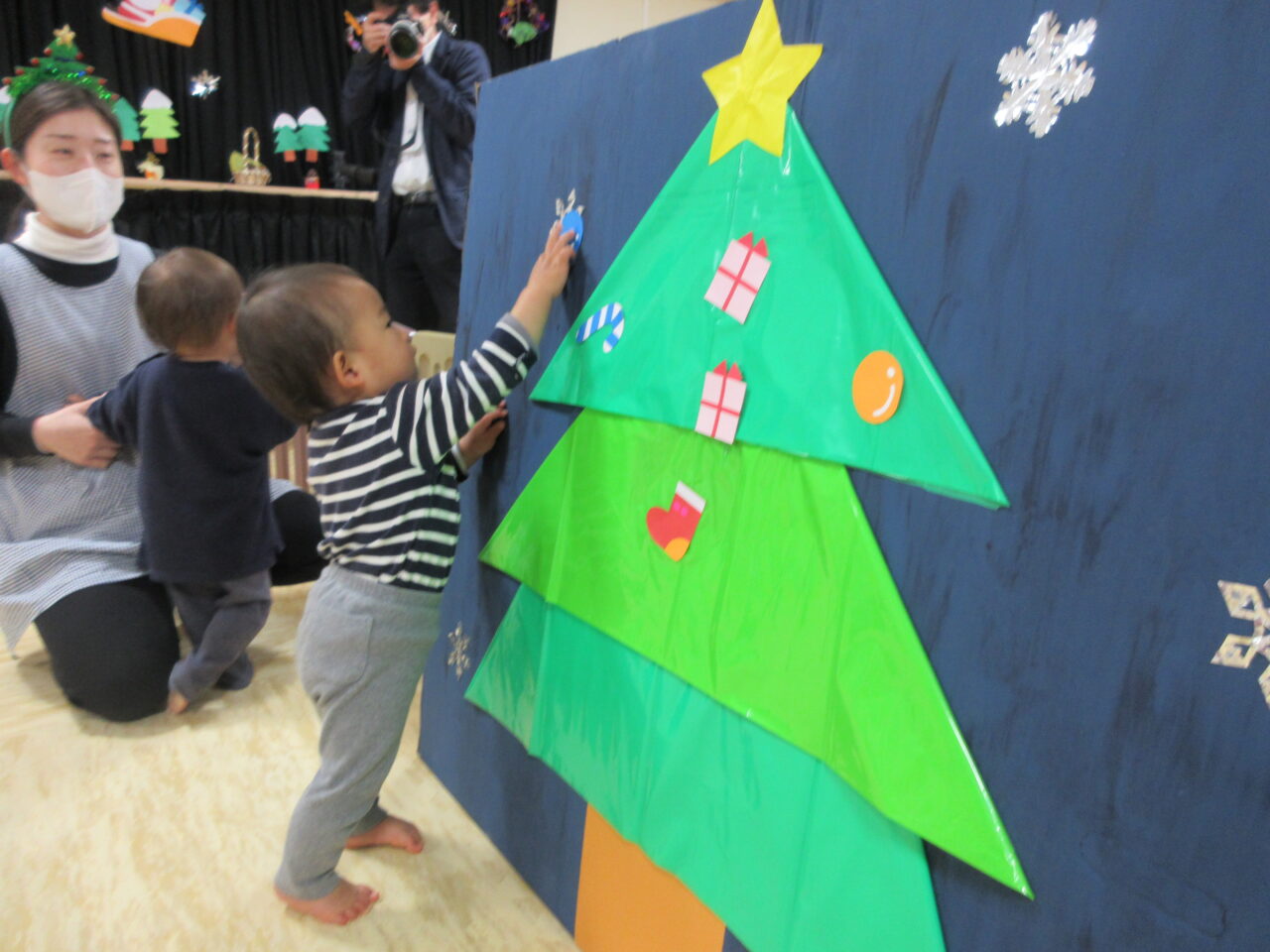 0.1歳児クラスは、みんなでツリーの飾りつけ🎄