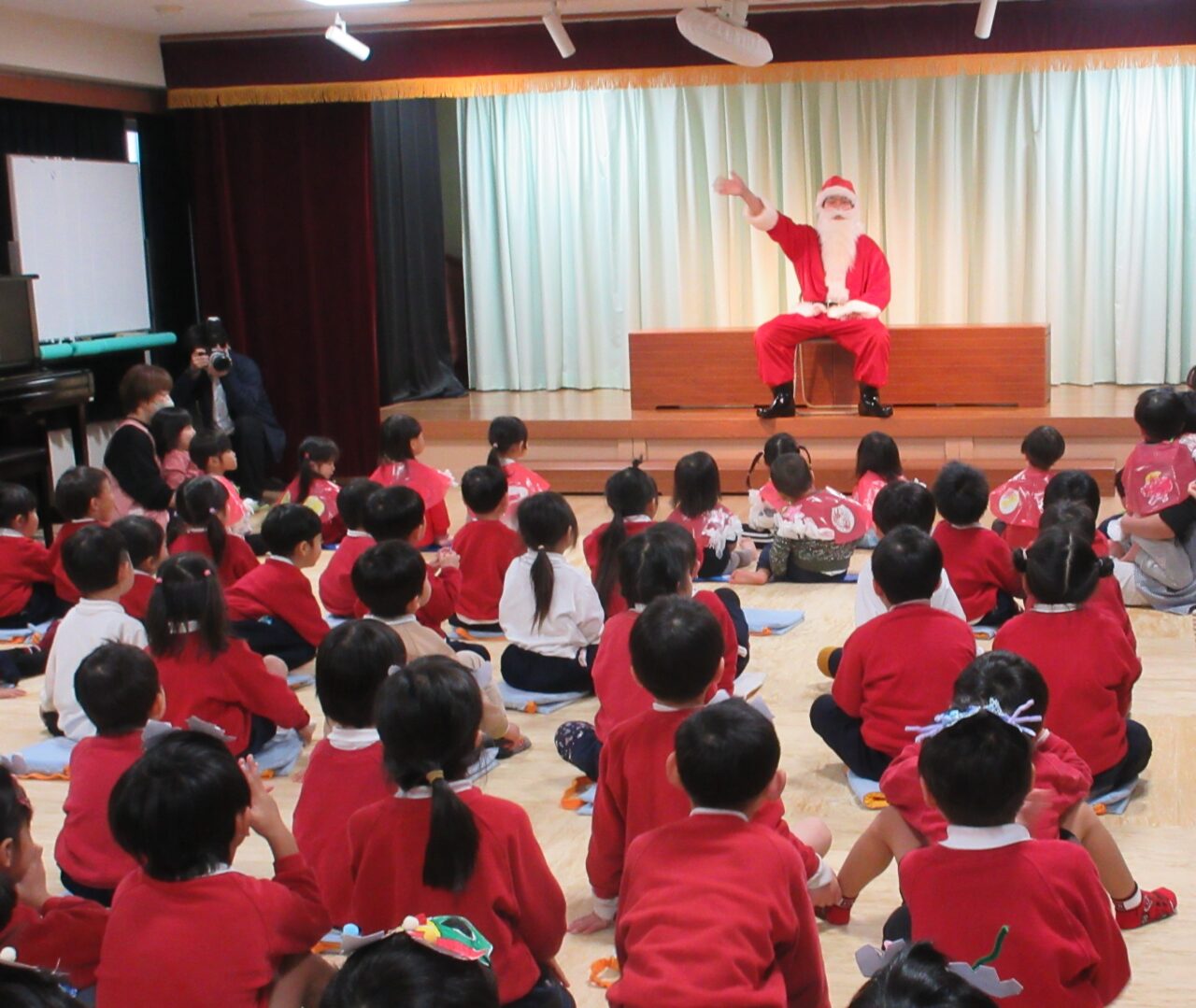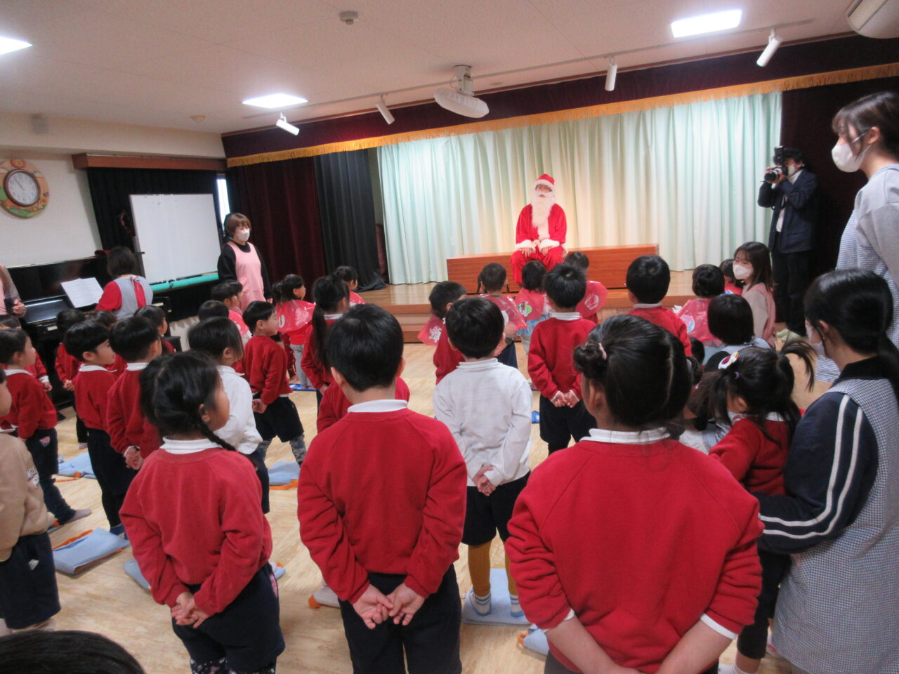 サンタの登場に子どもたちはびっくりしすぎて、しーん・・・