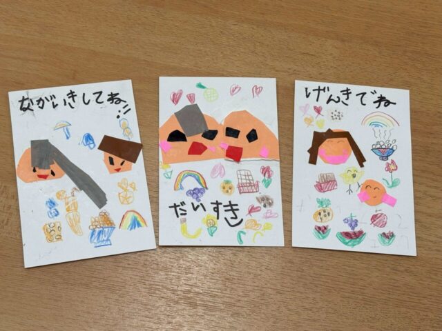 9月15日(月)は、敬老の日♪年中児・年長児が祖父母に向けて絵ハガキを作成しました。保護者の皆様には、作成のご協力ありがとうございました。 子どもたちは、大好きなおじいちゃんとおばあちゃんをイメージして絵を描いたり、文字を書いたり...