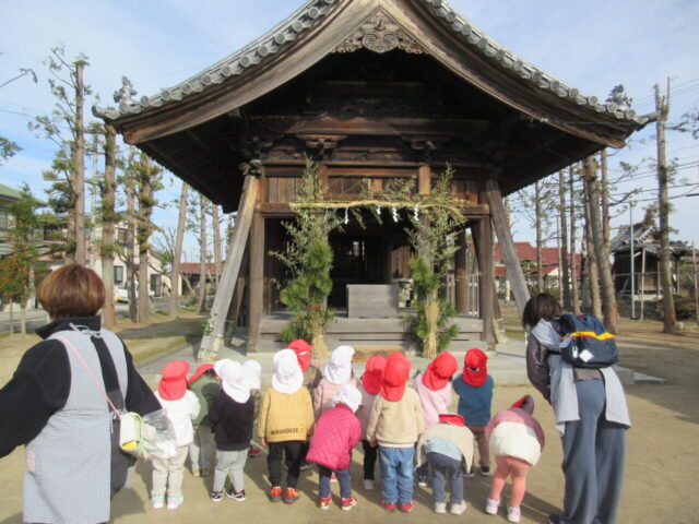 新しい年を迎え、元気いっぱいに子どもたちが登園してきました♪お休み中の出来事を嬉しそうに話す子どもたちに、何事もなく無事に年越しを迎えられたのだと安堵し、園でも今年一年元気に遊んで過ごせることを願って近くの神社へ初詣に行ってきました。お友だ...