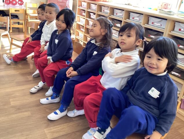 友達と一緒って、楽しいよね!月に1回のECCの時間です♪どのクラスも楽しんで活動していますよ!!みんなにお弁当作ってるの♪見て!これ、犬の影絵だよ!室内でも戸外でも、友達と一緒っていいね!!