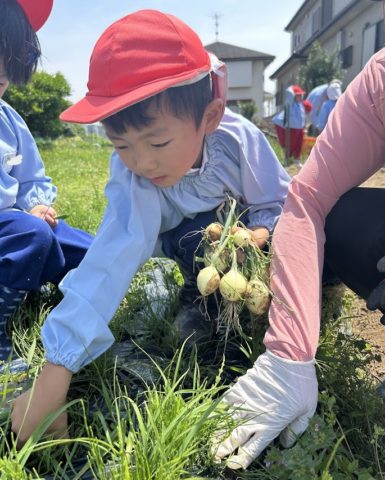 5月14日(水)、お天気にも恵まれ、はとぽっぽクラブのお母さんたちにもお手伝いをしていただき、あおぐみさんはさつまいものつるさしと玉ねぎ掘りに行ってきました!!お世話になっている稲垣さんに、つるさしのやり方を教えていただいてから、みんなでつ...