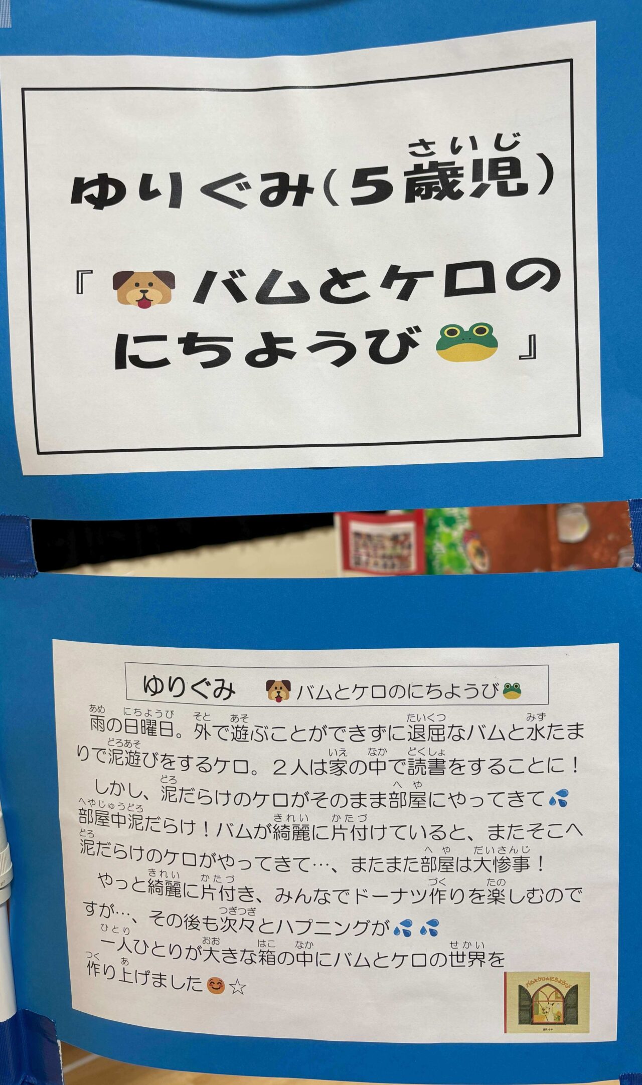 各クラスで好きな絵本を一冊決めて製作に取り組みました。